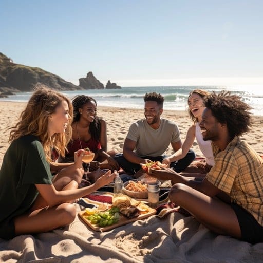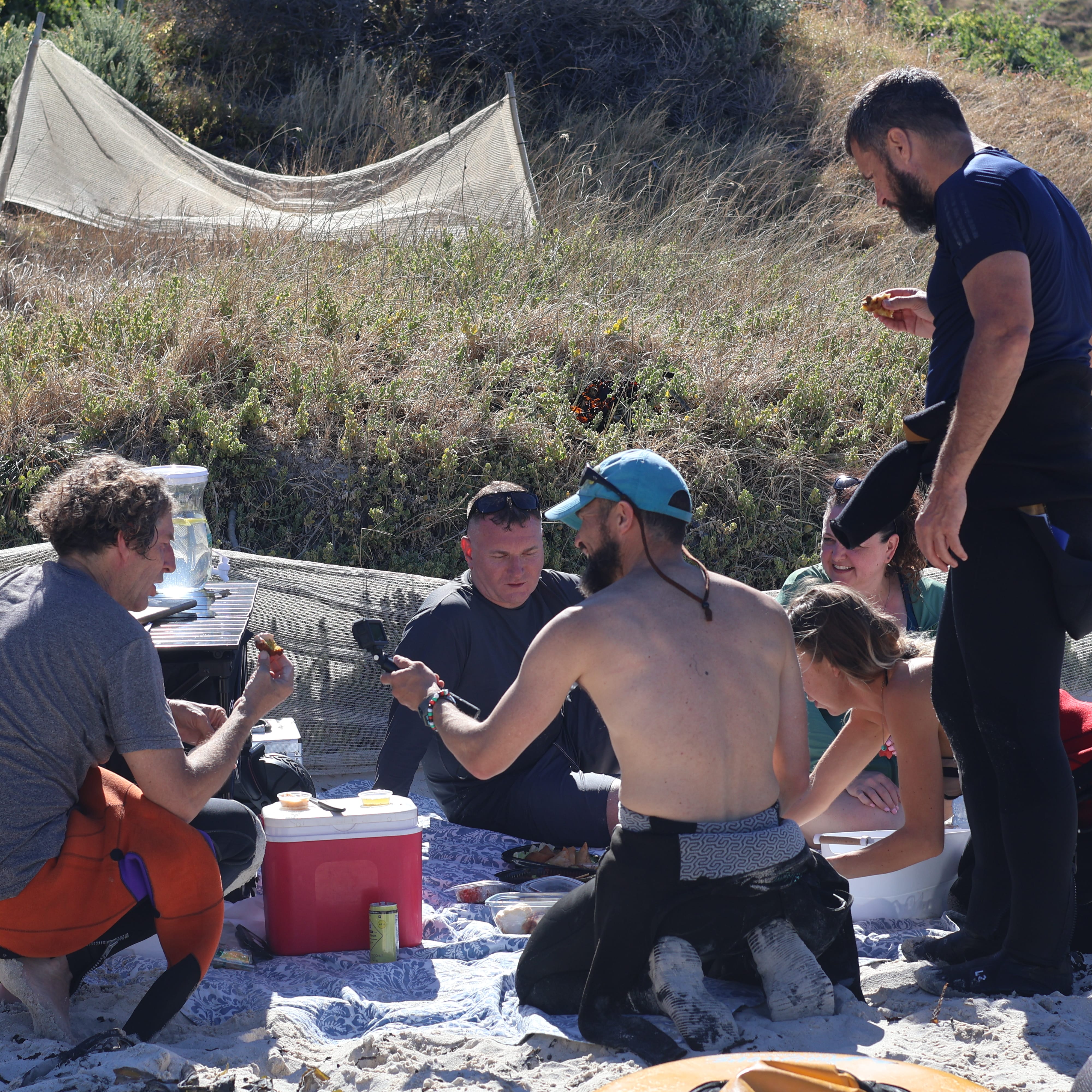 Waiting on the shoreline is your seaside tasting picnic, curated for travellers who appreciate flavour, culture, and a touch of indulgence after the ocean’s embrace. Expect fresh sushi, traditional Cape Malay fisherman delicacies, seasonal fruits, cheeses, and ice-cold refreshments — all arranged beautifully with the ocean as your backdrop. No queues, no searching for parking, no hunting for a restaurant. Just an effortless transition from sea to feast.